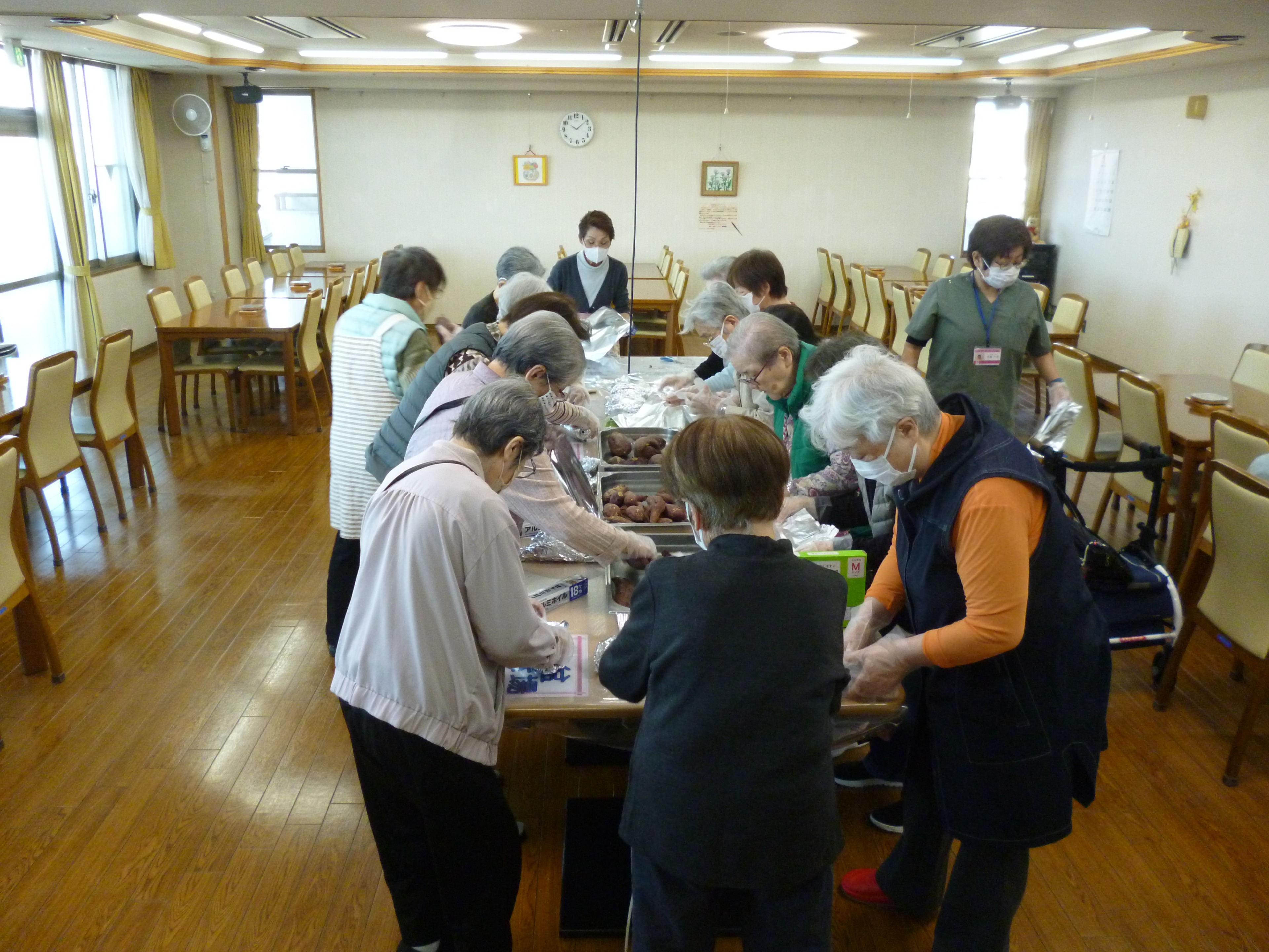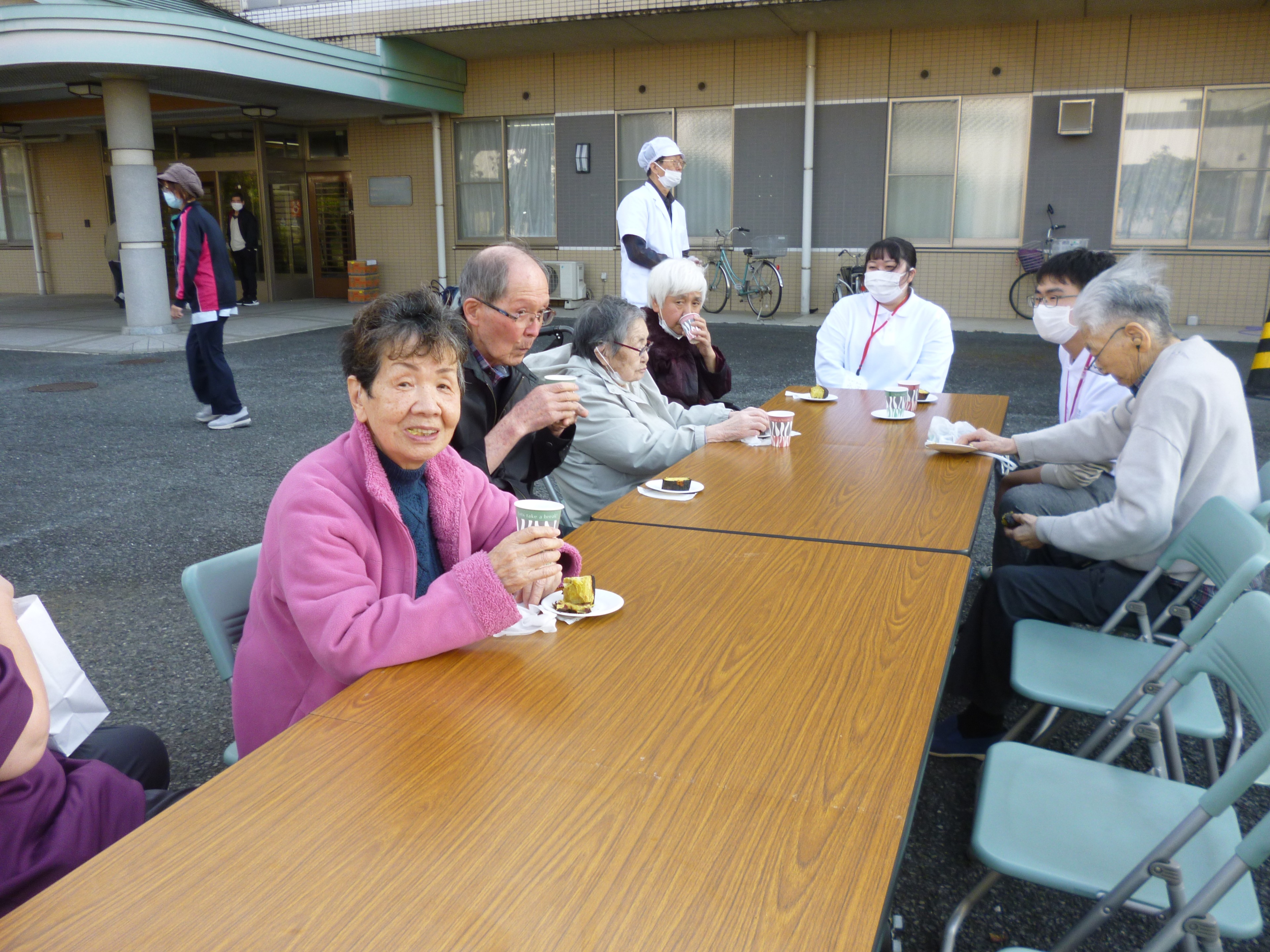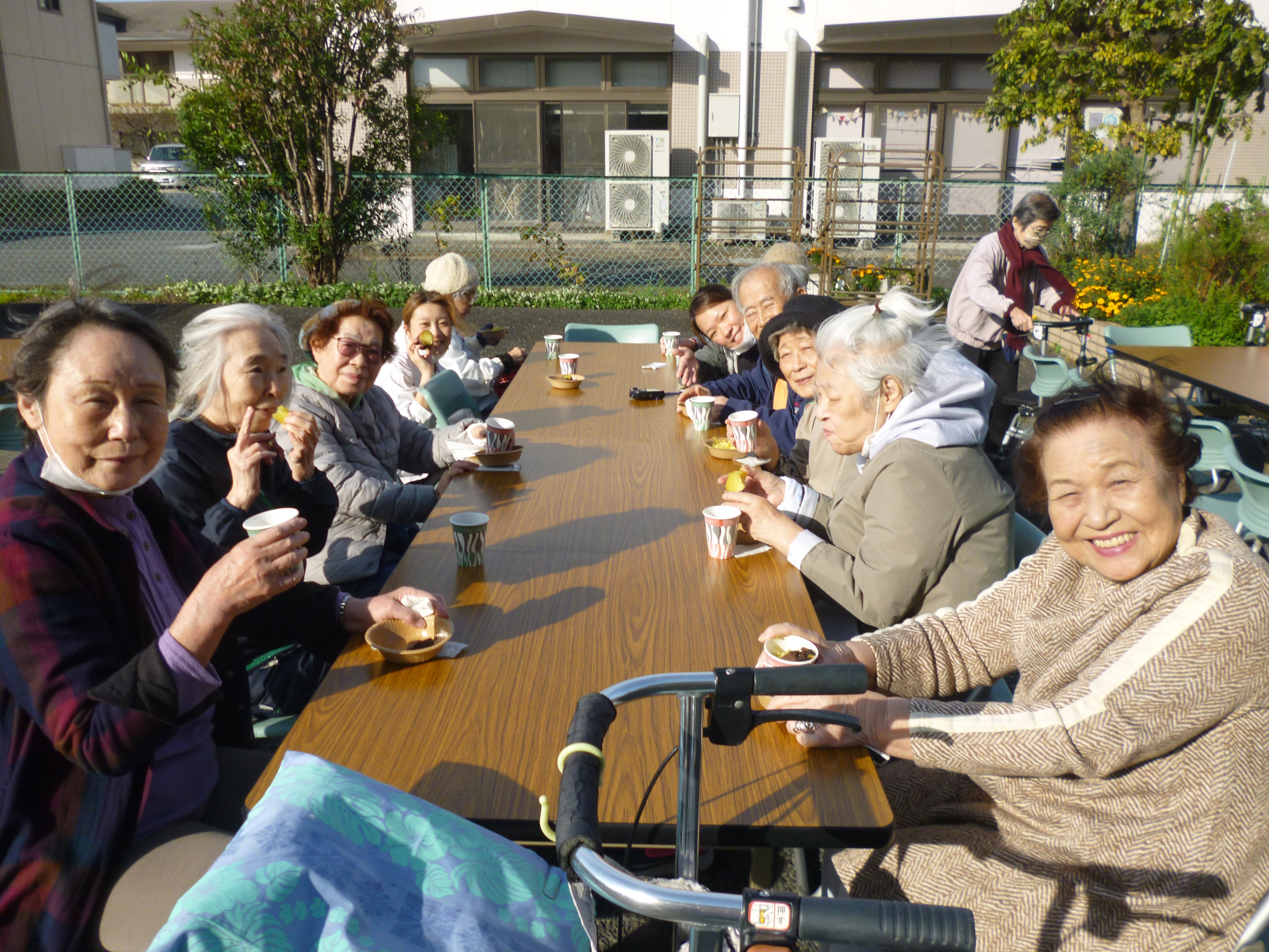 コロナで縮小の形で行っていましたが、久方ぶりにひかり苑デイサービスさん、万寿園さんのご利用者を誘っての開催となりました。焚火の煙の匂いが季節を感じさせてくれ、とても良い雰囲気の中で行えました。参加された皆さんはとても楽しまれ、普段よりもコミュニケーションがとれているのを見ていたら、それだけで職員も楽しかったです。